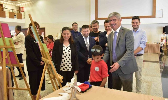 Protokol üyeleri sergiyi gezerek öğrencilerle sohbet etti. 'Sürdürülebilirliğe Merhaba De' projesi, üniversite-toplum iş birliğini güçlendirmesi, sosyal sorumluluk bilincini pekiştirmesi ve çocuklarda çevresel farkındalık oluşturması açısından büyük takdir topladı.