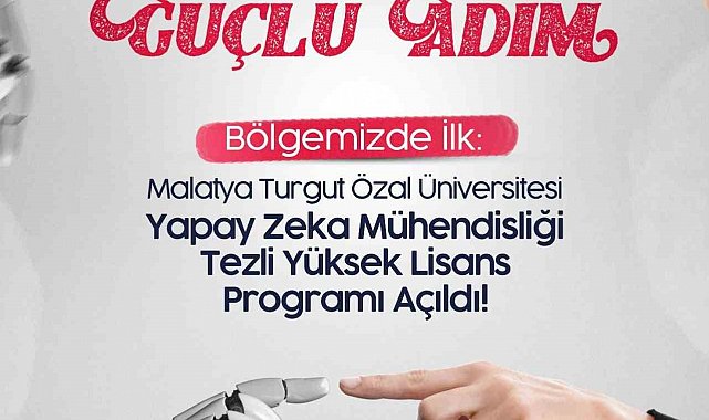 Malatya Turgut Özal Üniversitesi (MTÜ), Türkiye'nin dijital dönüşüm hedefleri doğrultusunda önemli bir adım atarak bölgede ilk kez Yapay Zeka Mühendisliği Tezli Yüksek Lisans Programını açtı. Yeni program, yükseköğretimde nitelikli insan kaynağı yetiştirme vizyonuyla, yapay zekâ teknolojilerinde uzmanlaşmak isteyen öğrencilere yönelik olarak hayata geçirildi.