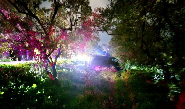 Bursa'nın Mudanya ilçesinde gece saatlerinde meydana gelen trafik kazasında, önündeki araca çarpamamak için manevra yapan sürücü zeytinliğe daldı.