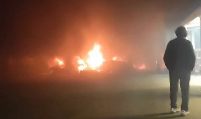 Yangında can kaybı ya da yaralanma yaşanmazken, duraklarda ve bir minibüste maddi hasar meydana geldi.