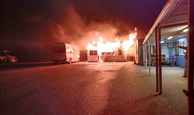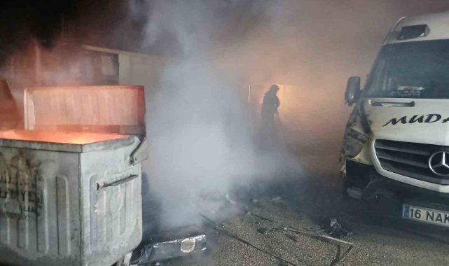 Mudanya Yumurtatepe mevkiinde bulunan minibüs duraklarında yangın çıktı. Bitişik haldeki iki adet mobo minibüs durağı alevlere teslim olurken, yangın bir minibüse de sıçradı. Yakındaki farklı bir konteyner ise kısmen yandı.