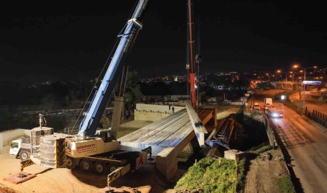 Bursa'nın ulaşım sorununu bilimsel veriler ışığında çözmek için çalışmalarını sürdüren Büyükşehir Belediyesi, Mudanya Yolu üzerindeki dar boğazı ortadan kaldıracak Geçit Köprüsü Projesi'ni aralıksız sürdürüyor. Nilüfer Çayı üzerinde 42 metre uzunluğunda ve 25 metre genişliğinde yapılması planlanan Geçit Köprüsü'nde, şu ana kadar 58 adet fore kazık imalatı tamamlandı. Çalışmaların 5 gece sürmesi planlanırken, Ulaşım Dairesi Başkanlığı ekipleri yoğun mesai harcayarak işlemleri eksiksiz yürütüyor. 00.00-06.00 saatleri arasında Mudanya-şehir merkezi istikameti trafiğe kapatılırken, köprünün en önemli aşamalarından olan 20 adet öngerme kirişinin montajı ekipler tarafından büyük bir titizlikle gerçekleştiriliyor. Çalışmalar sırasında sürücüler alternatif güzergâhlara yönlendirilerek ulaşımın kontrollü şekilde devam etmesi sağlanıyor.