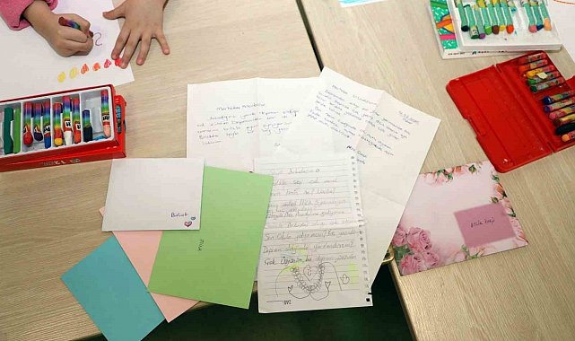 Aileleriyle birlikte mektuplar yazan ve sınıflarında duygularını resimlere döken çocuklar, depremden etkilenen yaşıtları için ev ve oyun parkı dileğinde bulundu. Sevgilerini, gülümseyen kalp ağaçlarıyla resmeden miniklerin bu anlamlı mesajları, Hatay'daki çocuklara moral olması için oyuncak kolilerine yerleştirildi.