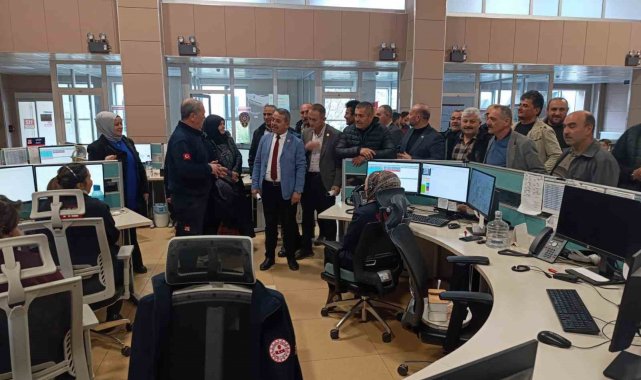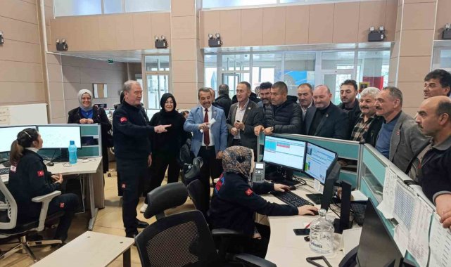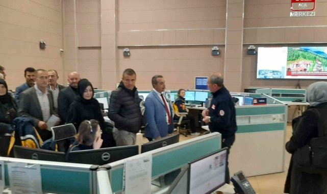 Kütahya Muhtar Derneği Başkanı İsmail Arı ve mahalle muhtarları, 112 Acil Çağrı Merkezi'ni ziyaret ederek, merkezde yürütülen çalışmalar hakkında bilgi aldı.