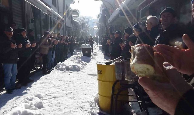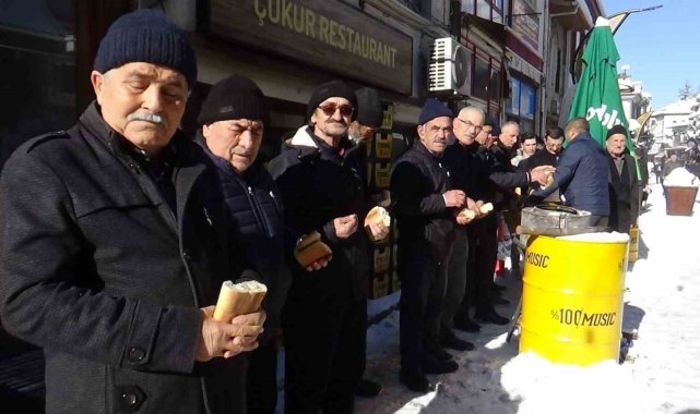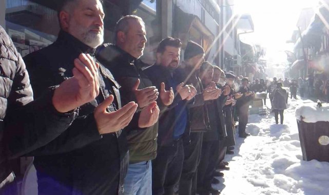 Bolu'nun Mudurnu ilçesinde yaklaşık 7 asırdır sürdürülen esnaf duası geleneği, dondurucu soğuğa rağmen yaşatılmaya devam etti. Hava sıcaklığının sıfırın altında 18 dereceyi gösterdiği günde, Mudurnulu esnaf geleneği bozmadı.
