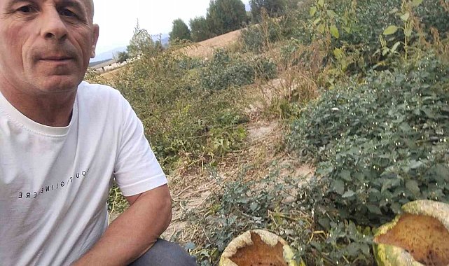 Bolu'nun Mudurnu ilçesine bağlı Çepni köyünde yaşayan çiftçi bahçesine ektiği yaklaşık 70-80 karpuz, hasada bir gün kala kargaların saldırısına uğradı.