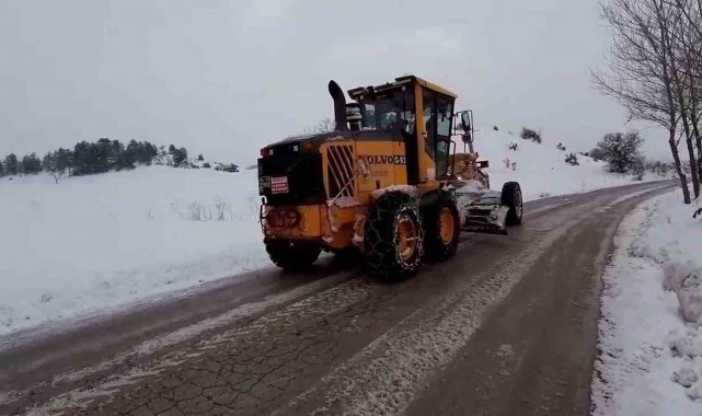 Bolu'nun Mudurnu ilçesinde kardan kapanan 12 köy yolu daha, ekiplerin çalışmalarıyla ulaşıma açıldı.