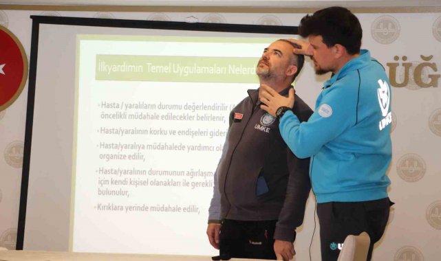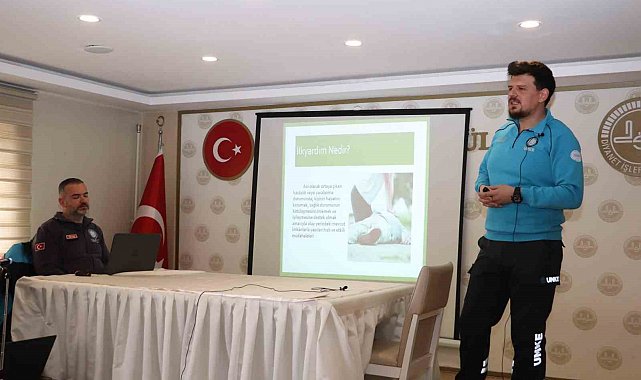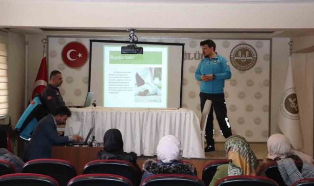İl Sağlık Müdürlüğü personeli tarafından düzenlenen ilk yardım eğitimi kapsamında, katılımcılara temel ilk yardım bilgileri teorik ve uygulamalı olarak anlatıldı.