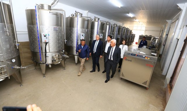 Muğla Büyükşehir Belediyesi'nin Fethiye ilçesinde hayata geçireceği Üzüm Suyu, Sirke, Pekmez ve Şarap Üretim tesisi kurulum çalışmaları devam ederken Muğla Büyükşehir Belediye Başkanı Dr. Osman Gürün ve Fethiye Belediye Başkanı Alim Karaca birlikte tesiste incelemelerde bulundu.