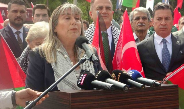 Anadolu'dan Gazze'ye Platformu Hukuk Sorumlusu Ayşegül Mungan, konuşmasında Batı'nın değerlerinin Gazze'de öldüğünü vurguladı. Mungan, "Tarih bize göstermiştir ki, sessizlik zulmü büyütür. Buna dur demek tüm vicdan sahibi insanların ortak görevidir" dedi.