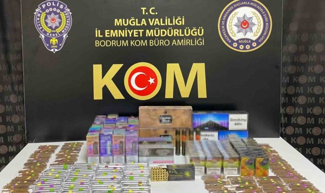 Muğla'da polis ekipleri kaçakçılığın önlenmesine yönelik çalışmalarını aralıksız sürdürüyor. Edinilen bilgiye göre, Ortaca Cumhuriyet Başsavcılığı ve Bodrum Cumhuriyet Başsavcılığı koordinesinde, İl Emniyet Müdürlüğü Kaçakçılık ve Organize Suçlarla Mücadele Şube Müdürlüğü ekiplerince Ortaca, Bodrum ve Dalaman ilçelerinde kaçakçılığın önlenmesine yönelik çalışma gerçekleştirildi. Çalışmalarda; 2 bin 676 adet puro, bin 478 paket sigara sarma kağıdı, 120 paket sigara, 34 adet bandrolsüz alkol, 34 adet tabanca fişeği, 30 adet elektronik sigara, 20 adet elektronik sigara tütünü ele geçirildi. 6 şüpheli şahsa 5607 Sayılı Kaçakçılıkla Mücadele Kanununa Muhalefet suçundan adli işlem yapılırken, 1 şahıs da çıkartıldığı adli makamlarca tutuklanarak cezaevine gönderildi.