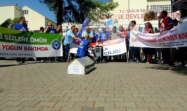 Muğla'da memurlar iş bırakıp tabutlu eylem yaptı