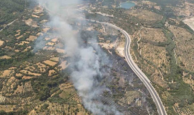 Muğla'nın Yatağan ilçesinde karayoluna yakın bölgedeki ormanlık alanda yangın çıktı.