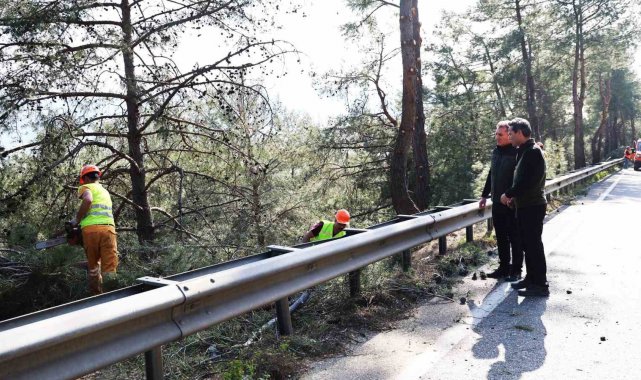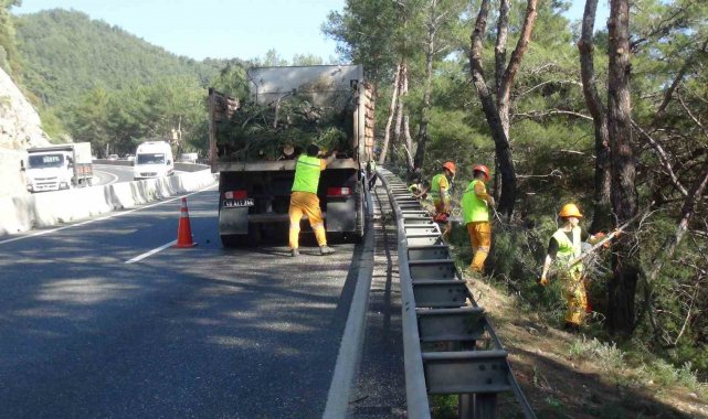 Bu kapsamda, 9 kilometrelik Sakar Geçidi'nde yol kenarındaki ağaçların yola sarkan dalları Muğla Orman Bölge Müdürlüğü ekipleri tarafından temizleniyor. Gökova Körfezi'ne hakim konumda bulunan ve tamamen çam ormanlarıyla kaplı Sakar Geçidi, aynı zamanda Türkiye'nin en tehlikeli yollarından biri olarak biliniyor. Ekipler, hem sürüş güvenliğini artırmak, hem de muhtemel yangın riskini azaltmak amacıyla çalışmalarını sürdürüyor.