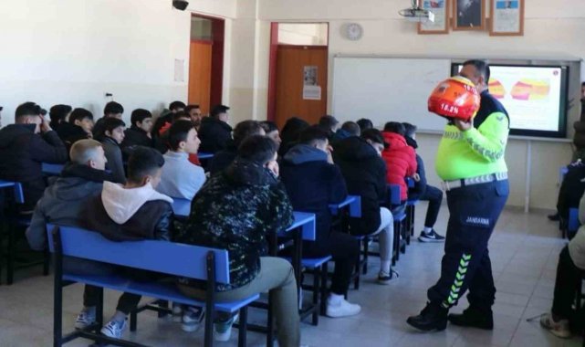 Muğla İl Jandarma Komutanlığı Trafik Şube Müdürlüğü ve Trafik Jandarması ekipleri tarafından 'Kaskın Kapalı, Yolun Acık Olsun' ve 'Kask Olsun, Canın Sağolsun' projeleri kapsamında öğrencilere yönelik bilgilendirme çalışmaları devam ediyor.