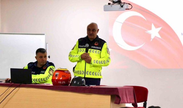 Muğla Jandarmasından öğrencilere kask ve koruyucu ekipman bilgilendirmesi