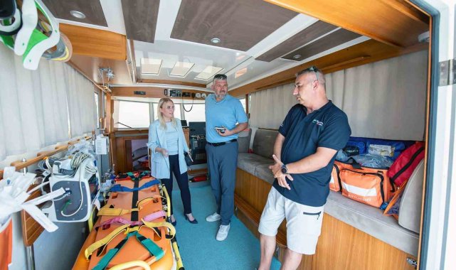 Muğla İl Sağlık Müdürü Dr. Eriş Başaran Akça, Bodrum Devlet Hastanesi ve Bodrum Deniz kurtarma Derneği bünyesinde görev yapan Deniz Ambulansından incelemelerde bulundu.
