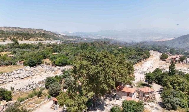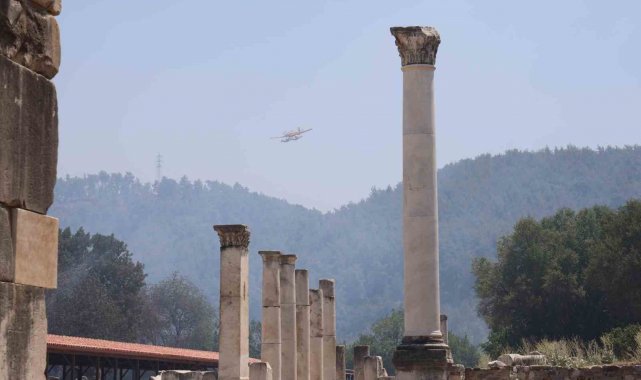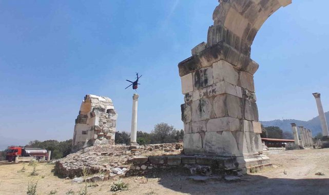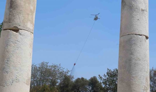 Muğla Stratonikia Antik kenti içinde de etkili olan zirai alan yangını ekiplerin havadan ve karadan yaptıkları yoğun müdahale ile kontrol altına alındı.