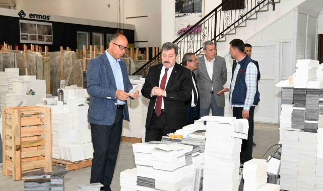 Vali Orhan Tavlı geçmişten günümüze mermer işleme teknolojileri, üretimi ve ihracatı yapılan mermer türleri ve mermer ihracatının ilimiz ekonomisine katkıları hakkında Muğla Mermerciler Derneği Başkanı ve Ermaş Mermer A.Ş. Yönetim Kurulu Başkanı Mustafa Ercan, Yönetim kurulu üyeleri Hakan Ercan ve Serkan Ercan'dan bilgi aldı.
