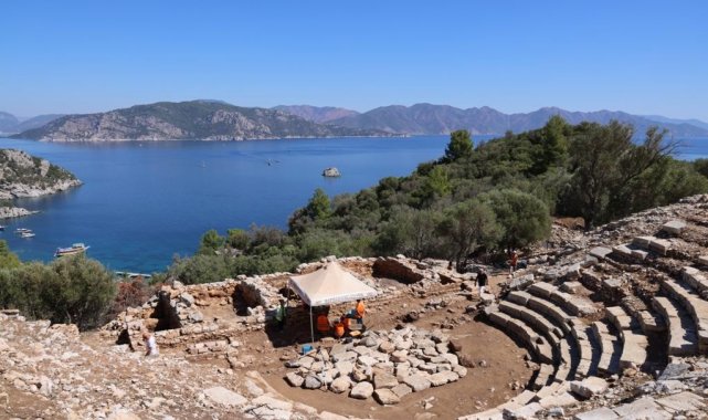 Muğla'nın Marmaris ilçesi Turunç Mahallesi'nde binlerce yıllık geçmişiyle tarihe ışık tutan Amos Antik Kenti'ndeki kazı çalışmaları sürüyor. Bu yıl çalışmalar tiyatro, sahne ve merdivenlerde yoğunlaştırıldı.