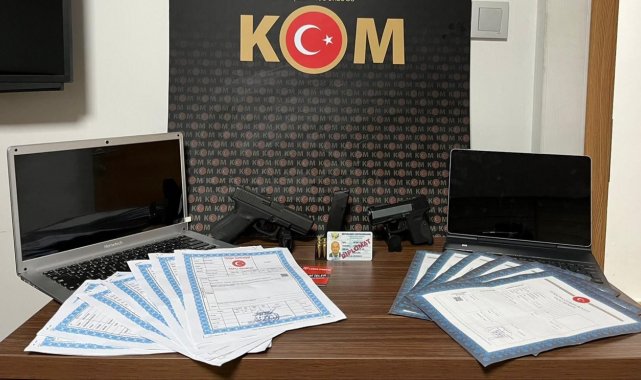 Şüphelilere ait ikametlerde yapılan aramalarda ise suça ilişkin olarak çok sayıda sahte sigorta belgesi, sahte banka teminat mektupları, dolandırılarak alınan tapular, sahte diplomat kimliği, 2 adet tabanca ile 52 adet mermi ele geçirildi.