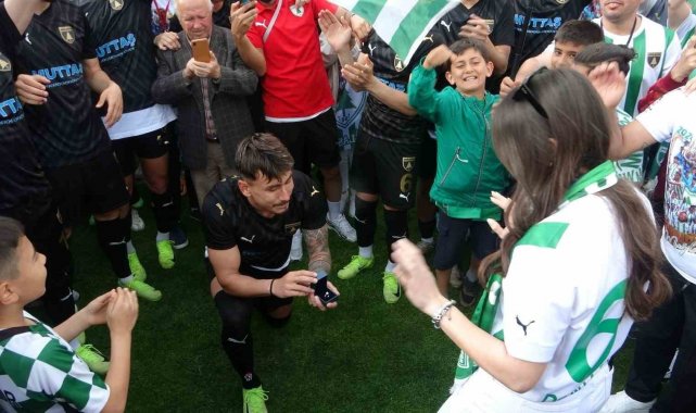 TFF 3. Lig'de şampiyonluk yaşayan Muğlaspor'un futbolcusu Furkan Demir, kız arkadaşı Deniz Kaman'a sürpriz bir şekilde evlenme teklif ederken, sürpriz teklif esnasında duygusal anlar yaşandı.
