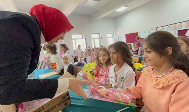 Diyarbakır'ın Bağlar ilçesine bağlı Muradiye Mahallesi muhtarı Dilek Demir, 'Dünya Kız Çocukları Günü' nedeniyle okullardaki tüm kız çocuklarına hediyeler dağıttı.