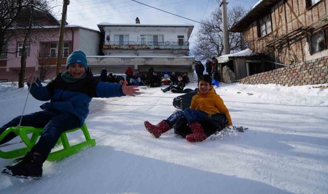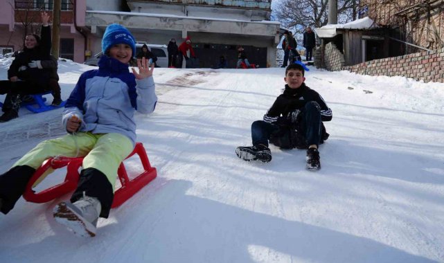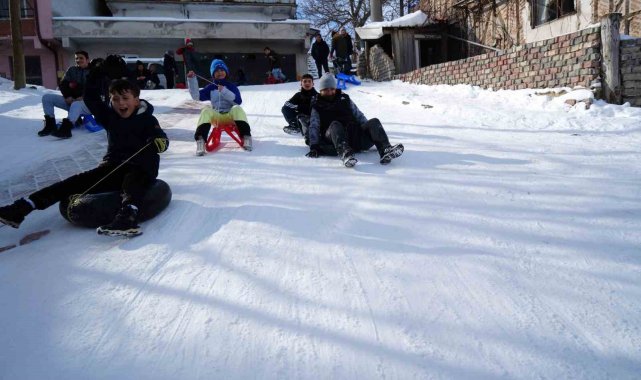 Kızaklarla kayan çocukların eğlenceli anları kameralara yansırken, mahalledeki büyükler de çocukları izleyerek keyifli anlara ortak oldu. Her yıl bu yokuşta kaydıklarını belirten çocuklar, burada çok eğlendiklerini ifade etti.