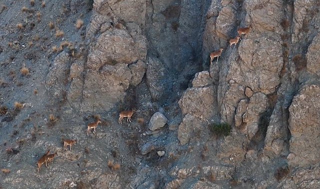 Erzincan'ın doğal zenginlikleri arasında önemli bir yere sahip olan yaban keçileri, Munzur Dağları'ndaki doğal yaşam alanlarında drone ile görüntülendi.