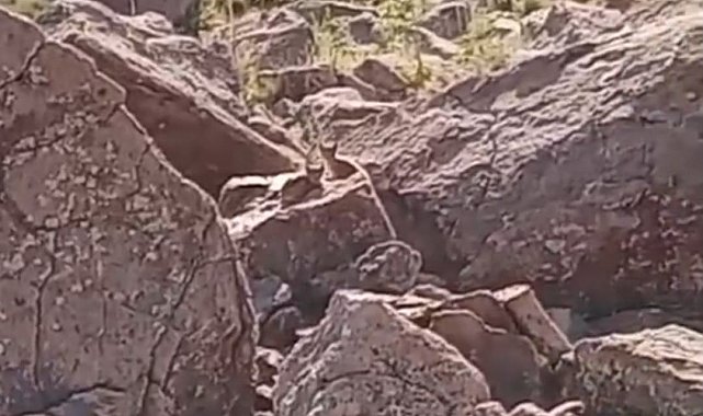 Van'ın Muradiye ilçesinde nesli tükenmekte olan vaşak ailesi görüntülendi.