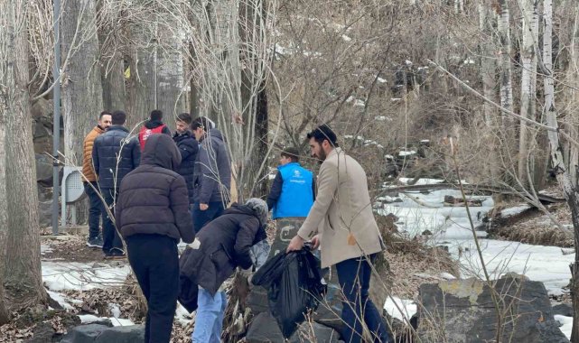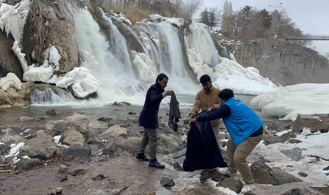 Van'ın Muradiye ilçesinde Gençlik Merkezi personel ve gönüllüleri, çevre bilinci farkındalığı oluşturmak amacıyla Muradiye Şelalesi çevresinde çöp toplayıp, kısmen donan şelale önünde satranç oynadı.
