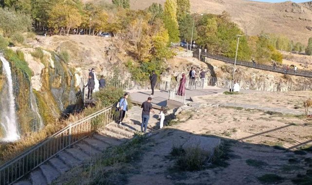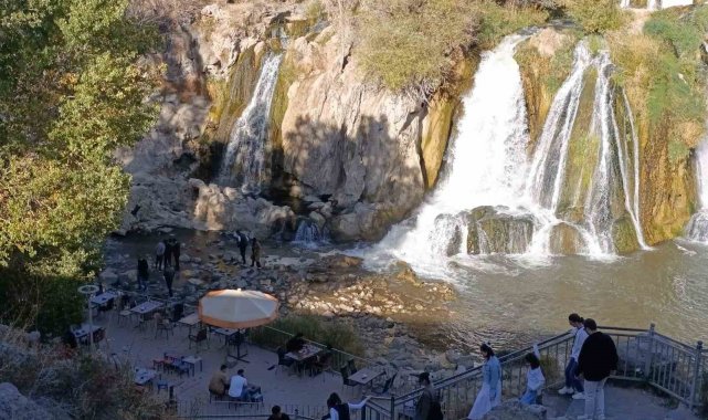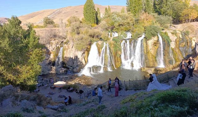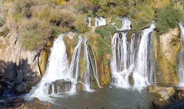 Van'ın doğal güzelliklerinden Muradiye Şelalesi, sonbaharda sunduğu muhteşem manzarasıyla yerli ve yabancı turistlerin uğrak mekanı oldu.