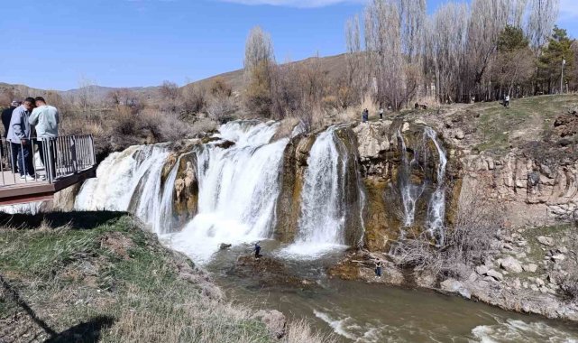 VAN (İHA) – Ramazan Bayramı nedeniyle uygulanan 9 günlük tatili fırsat bilen yüzlerce yerli ve yabancı turist Muradiye Şelalesi'ne akın etti.