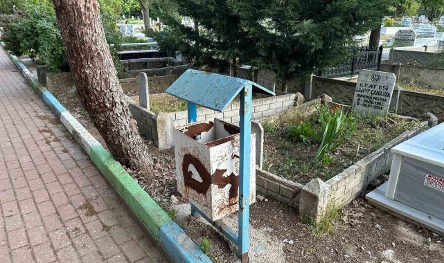 Muratlı Mezarlığı'ndaki çöp kovaları yenilenmeyi bekliyor
