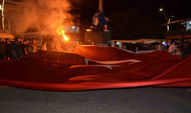 Muş Köy-Gel Derneği, Malazgirt Zaferi'nin 954'üncü yıl dönümü etkinlikleri kapsamında Hasköy ilçe meydanında bir araya gelerek meşale yaktı ve 6 metre uzunluğunda Türk bayrağı açtı.