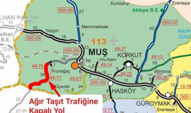 Muş-Kulp karayolunda etkili olan kar yağışı ve tipi nedeniyle, ulaşımda aksamalar yaşanmaması amacıyla trafik tedbiri alındı. Muş Valiliğinden yapılan açıklamaya göre, 49 ile 75 kilometreleri arasındaki kesimi, kar ve tipi nedeniyle 12.00 itibarıyla tır ve çekici tipi taşıt trafiğine kapatıldı. Söz konusu güzergahta olumsuz hava şartlarının sürmesi nedeniyle sürücülerin dikkatli olmaları, zorunlu olmadıkça bu güzergâhı kullanmamaları istendi. Yolun yeniden ulaşıma açılması için ekiplerin karla mücadele ve yol açma çalışmalarını sürdürdüğü, hava ve yol şartlarının normale dönmesinin ardından tır ve çekici trafiğine tekrar izin verileceği bildirildi.