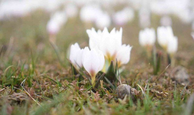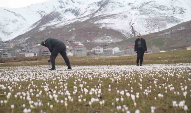Muş Ovası'nda baharın ilk habercisi olan çiğdem çiçekleri, etkili olan kar yağışı nedeniyle bir süre kar altında kaldı. Havaların düzelmesi ve karların erimesiyle birlikte çiğdemler geniş tarlalarda yeniden ortaya çıktı.