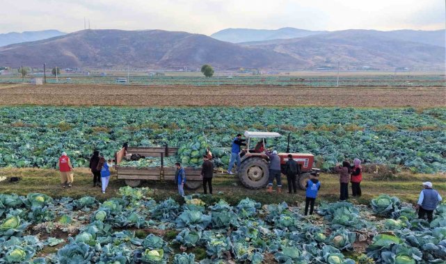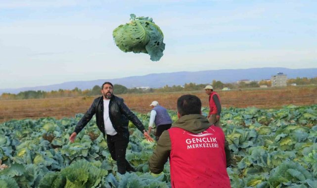 Muş Ovası'nda lahana hasadı devam ederken, gençlik merkezi gönüllüleri kırsaldaki çiftçilere destek olmak amacıyla tarlalara inerek hasada katıldı.