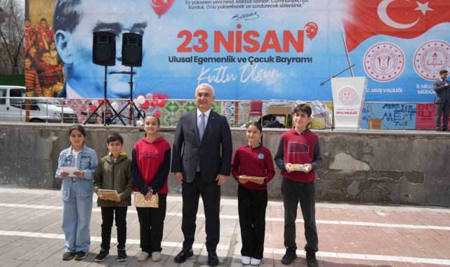 Muş'ta 23 Nisan Ulusal Egemenlik ve Çocuk Bayramı Kent Meydanı'nda gerçekleştirilen törenle başladı. Tören kapsamında İl Milli Eğitim Müdürü Abdulkadir Altay tarafından Atatürk heykeline çelenk sunuldu. Çelenk sunumunun ardından saygı duruşunda bulunuldu ve İstiklal Marşı okundu. Programda konuşan Vali Avni Çakır, sözlerine Şanlıurfa ve Kahramanmaraş'ta yaşanan saldırılarda hayatını kaybeden öğretmen ve öğrencileri anarak başladı. Yaşanan acıların gölgesinde 23 Nisan'ın buruk bir şekilde idrak edildiğini ifade eden Çakır, "Bugün sadece bir bayramı kutlamıyoruz. Bugün, bir milletin sahip çıktığı, iradesini tüm dünyaya ilan ettiği ve geleceğini sizlere emanet ettiği büyük bir dönüm noktasını yaşıyoruz. Sizler; bu ülkenin umudu, enerjisi ve yarınlara uzanan en sağlam köprüsüsünüz. Sizler sadece büyüyecek bireyler değil, bu milletin yarınlarını şekillendirecek akıl, vicdan ve cesaretsiniz" dedi.