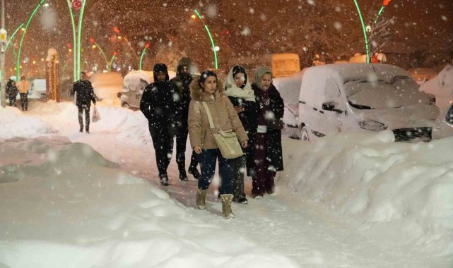 Muş'ta dünden bu yana etkili olan kar yağışı ulaşımı olumsuz etkiledi. Kent merkezinde kar kalınlığı 60 santimetreye ulaşırken İl Özel İdaresi ekipleri kar ve tipi nedeniyle ulaşıma kapanan 303 köy yolunda çalışma başlattı. Karayolları ekipleri de yollarda ulaşımın aksamaması için tuzlama ve kar küreme çalışmalarına aralıksız devam ediyor. Kentte kar yağışının iki gündür etkisini sürdüğünü ifade eden Süleyman Altun, "Kar yağışı hayatı olumsuz etkiledi. Sabah arabalarımız kara gömülmüş durumdaydı. Bizler de arabalarımızı temizledik" dedi. Valilik yoğun kar yağışı ve buzlanma tehlikesi nedeniyle bugün il genelinde okulları tatil etti.