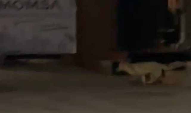 Muş'ta yiyecek arayan bir tilki, gece saatlerinde çarşı merkezine indi. O anlar, çevredeki vatandaşlar tarafından cep telefonu kamerasıyla kaydedildi.
