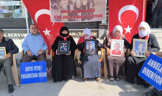 Muş'ta çocuklarının terör örgütü PKK tarafından dağa götürülmesinden DEM Parti'yi sorumlu tutan aileler, partinin il başkanlığı binası önündeki eylemlerini sürdürüyor. Her hafta çarşamba günü DEM Parti İl Başkanlığı önünde bir araya gelen aileler, çocuklarına teslim olmaları çağrısında bulundu. Ellerinde "Anneler direniyor", "Evlat nöbetindeyiz" ve "Artık yeter yakamızdan düşün" yazılı pankartlar taşıyan aileler, çocuklarının yolunu umutla beklemeye devam ediyor.