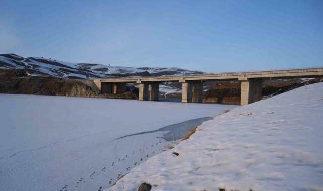 Muş'ta etkili olan soğuk hava nedeniyle Alparslan-2 Barajı'nın yüzeyi buzla kaplandı.