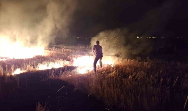 Muş'un Körpeağaç köyünde çıkan anız yangını korkulu anlar yaşatırken geceyi alevler aydınlattı