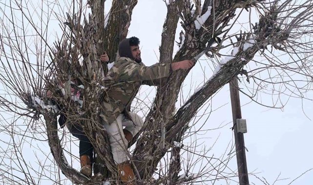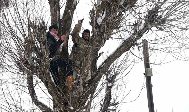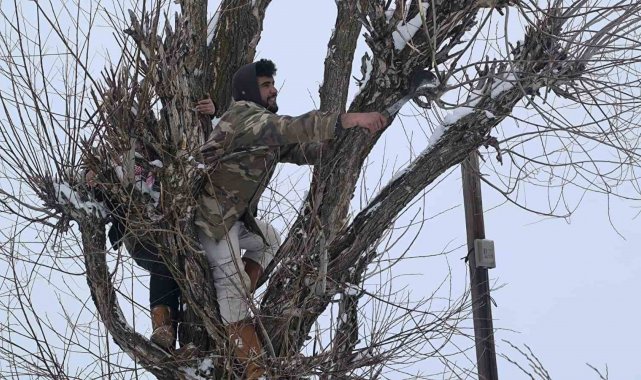 Muş'ta küçükbaş hayvan yetiştiricileri, budanan söğüt dalları ile hem hayvanları besliyor hem de saman ve arpa maliyetini azaltıyor.