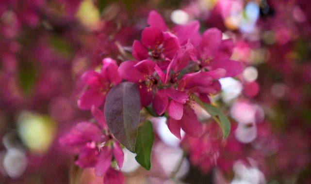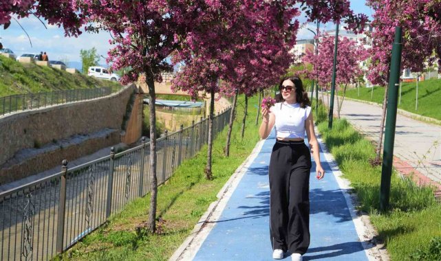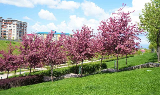 Muş'ta baharın gelişiyle birlikte doğa yeniden canlandı, meyve ağaçları rengarenk çiçekleriyle adeta görsel şölen sundu. Kentin önemli dinlenme alanlarından biri olan Lale Vadisi Parkı'nda bulunan Çin elması ağaçları ise güzelliğiyle göz kamaştırdı.