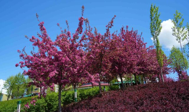 Çin kültüründe uzun ömür ve bolluğun sembolü olarak bilinen Çin elması ağaçları, pembe ve beyaz tonlardaki çiçekleriyle parka gelen ziyaretçilerin ilgisini çekti. Çiçeklerin açmasıyla birlikte ortaya kartpostallık manzaralar çıktı. Parka gelen vatandaşlar bu anları cep telefonlarıyla kayıt altına aldı.