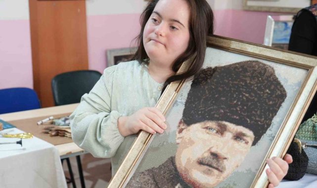 Muş'ta takı tasarım kursuna katılan down sendromlu Rabia Nur Güngör'ün mozaik tabloları ve el emeği çantaları büyük ilgi görüyor. Rabia Nur, kristal mozaikten hazırladığı Atatürk posterini Tarkan'a hediye etmek istiyor.