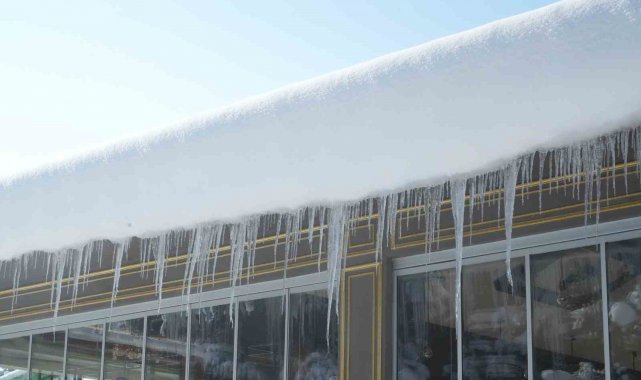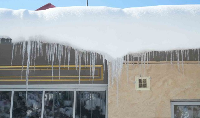 Muş'ta gece saatlerinde hava sıcaklığının eksi 28 dereceye kadar düşmesiyle göletler dondu, binaların çatılarında metrelerce buz sarkıtları oluştu.