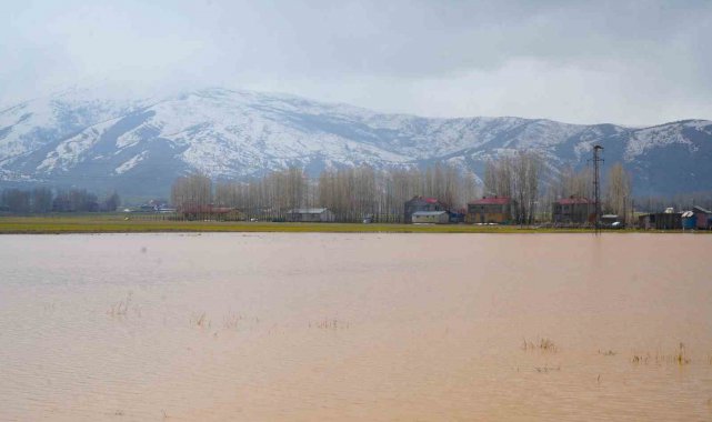Muş Ovası'nda mevsim normallerinin üzerindeki sıcaklıklar ve aralıklarla etkili olan sağanak, kar sularıyla birleşince tarım arazilerinde göletler oluştu, bazı köylerde ev ve ahırları su bastı.